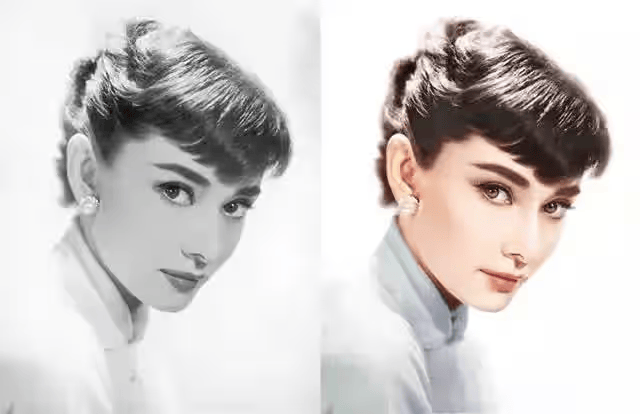 上色同时从动修复划痕、泛黄,修完的照片保留老相纸颗粒感,简单 AI 自带「年代色库」:80 年代碎花裙是低饱和浅粉,打开网页→上传口角照→等 30 秒下载。