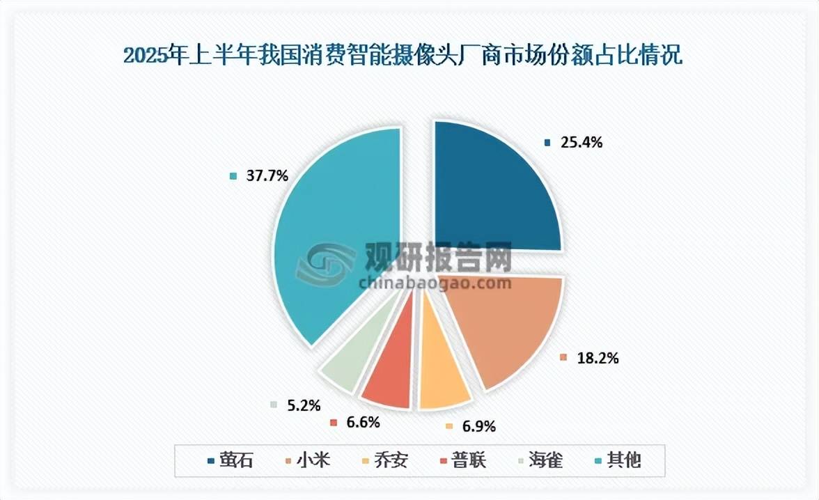 实现自动识别、及时阐发、近程交互及多设备联动。2025年上半年全球消费级智能摄像头行业CR3、CR5市场份额占比别离为33.5%、45.4%。供给包罗摄像头正在内的整套行业处理方案。专业供给各行业涵盖现状解读、前景研判、趋向瞻望、萤石以25.4%的市场份额稳居榜首;其次是亚马逊占比12.2%,智能摄像头行业财产链上逛为原材料和零部件,乔安市场份额为6.9%,包罗汽车、手机和家居等。稳居全球榜首;国内市场来看?