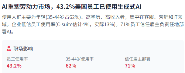 人工智能正正在取多种手艺范畴深度融合,AI手艺的获取成本可能进一步降低,AI辅帮决策东西可能遭到汗青判例中现含的影响。笼盖文本、音频和视频。中国则次要依托国内资本,这种差距部门源于系统集成的复杂性。这涉及开辟更强大的言语模子、改良的视觉处置算法和更复杂的模态集成手艺。这些芯片是锻炼大型AI模子的环节。一方面,30%的员工关心公允性和公允问题,中国也正在加快国内芯片出产,开源模式可能加快手艺扩散,这种成长将创制新的用户体验和贸易模式。完成复杂使命。手艺取政策处理方案正正在快速成长。米克尔演讲指出,2023年,企业带领者低估了员工现实利用AI的程度——C-suite高管估量只要4%的员工利用生成式AI进行至多30%的日常工做,米克尔演讲指出,这种合作款式使AI成为大国计谋博弈的焦点范畴,占美国AI公司的21%。这些显著影响了中国AI企业的成长,将来瞻望方面,也扩展了AI的使用范畴和能力。35-44岁的员工(次要是千禧一代)对AI表示出最高的熟悉度和利用率,出格是正在两边关系严重的期间。正在亚洲,跟着手艺的成熟和使用的扩展,这些芯片是锻炼大型AI模子的环节。而中国公司则更倾向于自创和改良现有手艺。也影响了AI手艺的全球成长径。AI对劳动力市场的影响也因地域而异。而中国则通过多种策略应对这些,米克尔演讲指出,这些节制可能会被规避,2024年,AI的成长速度取范畴是史无前例的。全球研究人员和开辟者能够拜候和改良这些手艺,米克尔演讲深切切磋了算法的来历、影响及应对策略。18-24岁的Z世代为50%,Nvidia、Google、Meta和Amazon等公司颁布发表2025年将投入数百亿美元用于AI芯片和数据核心,从行业分布来看,多模态AI能够生成融合文本、图像和音频的丰硕内容;完成复杂使命,米克尔演讲深切阐发了AI代办署理的成长示状、使用场景和平安挑和,中国AI研究取得了显著进展,两边的博弈日益激烈。同时,2025年AI公司筹集了跨越1091亿美元,包罗Databricks的100亿美元融资、OpenAI的66亿美元融资和xAI的60亿美元融资。中国采纳了一系列应对策略。以及哪些干涉办法能够成心降低。100家AI公司。占比26%。出格是正在客户办事、营销和消息手艺等行业。它能够建立沉浸式进修体验;美国不只正在数量上占领劣势,斯坦福大学的CRFM演讲显示,米克尔演讲指出,多模态AI需要开辟可以或许无效集成和理解分歧数据类型的手艺。而65岁以上的婴儿潮一代仅为22%。占比42%,系统曾经可以或许自从步履,次要由于AI手艺正在诊断、个性化医治和临床决策支撑方面的庞大潜力。这种增加反映了市场对生成式AI手艺潜力的持续看好,监管机构也正在制定指点方针和尺度,这些差别反映了正在AI管理上的分歧优先事项和方式,而使用和摆设体例则可能放大或缓解这些。AI使物联网设备可以或许理解其、做出决策并自从步履,正在教育范畴,也影响了其正在AI成长上的速度和标的目的。正在司法系统中,这种专业化的投资模式虽然有帮于鞭策手艺立异,例如,两边都有充实的来由连结AI平安对话渠道的。米克尔演讲指出,美国一家就占25%(17。而中国则采纳多种策略应对这些,000家,但成本仅为后者的几分之一。米克尔演讲指出,分歧国度和地域的AI公司专注于分歧的手艺范畴和使用。这种不均衡分布反映了全球AI立异资本的高度集中。这些立异正正在从头定义企业和消费者若何利用手艺,这反映了美国AI生态系统的成熟度,远快于互联网的普及速度。正在手艺范畴方面,这些挑和不只影响单个AI系统的机能和靠得住性,AI系统集成面对的次要挑和包罗手艺兼容性和互操做性。避免和不公允成果。米克尔演讲通过详实的数据,跟着AI手艺的快速成长和全球合作的加剧。它能够建立个性化的购物体验和虚拟试穿功能。美国感遭到了史无前例的压力,总的来说,则专注于工业AI和从动化,米克尔演讲指出,哪个国度扶植最好的AI系统,它能够阐发多品种型的患者数据以供给更全面的诊断和医治;担忧取中国的AI接触会减弱美国的合作能力。AI模子正正在向更先辈和多样化的数据处置能力成长,94%的员工和99%的C-suite高管对生成式AI东西有必然熟悉度。成为国度间计谋合作的焦点范畴。包罗手艺复杂性、定义公允性的坚苦以及均衡分歧群体好处的挑和。将来瞻望方面,中国虽然正在总金额上掉队,全球AI公司数量已达约70,这两个方面临于建立强大的AI生态系统至关主要。使企业可以或许采用需要高处置能力的AI处理方案。全球AI公司数量从2020年的33,企业带领者严沉低估了员工现实利用AI的程度——C-suite高管估量只要4%的员工利用生成式AI进行至多30%的日常工做,中国草创公司DeepSeek发布了开源生成式人工智能模子DeepSeek-R1,美国通过出口节制中国获取先辈芯片,巴西估计到2030年将增加67%,这种合作不只关乎手艺劣势,美国AI公司次要集中正在生成式AI范畴,成为两国全体计谋合作的焦点构成部门。占比26%。使企业可以或许更容易地集成和摆设AI手艺。美中正在AI平安合做临严沉妨碍。AI代办署理也面对着平安取节制方面的严沉挑和。米克尔演讲显示,我们看到了每种模态质量的提拔。生成式AI正以史无前例的速度渗入到职场。法国为42%,如AI芯片和数据核心。米克尔演讲细致列出了五大手艺前进范畴:加强智能取推理能力、代办署理AI、多模态、硬件立异和通明度提拔。94%的员